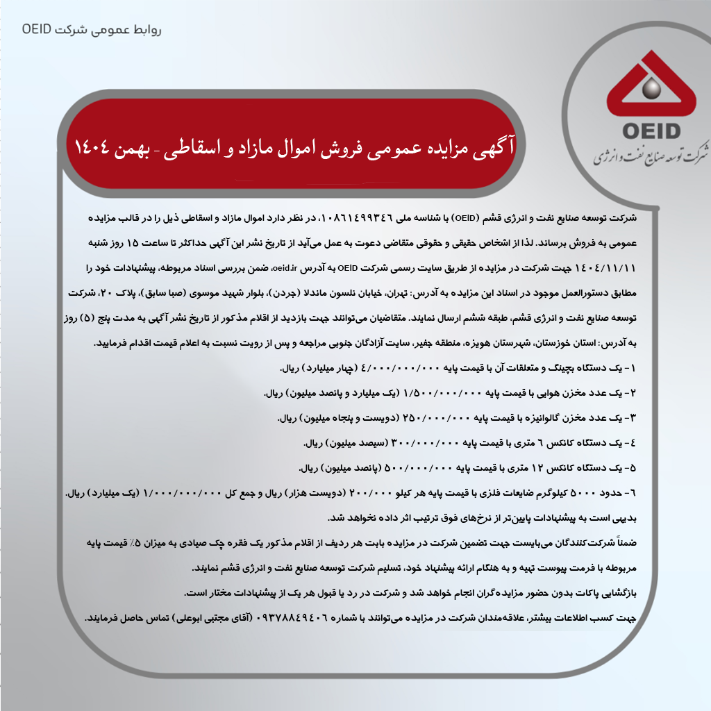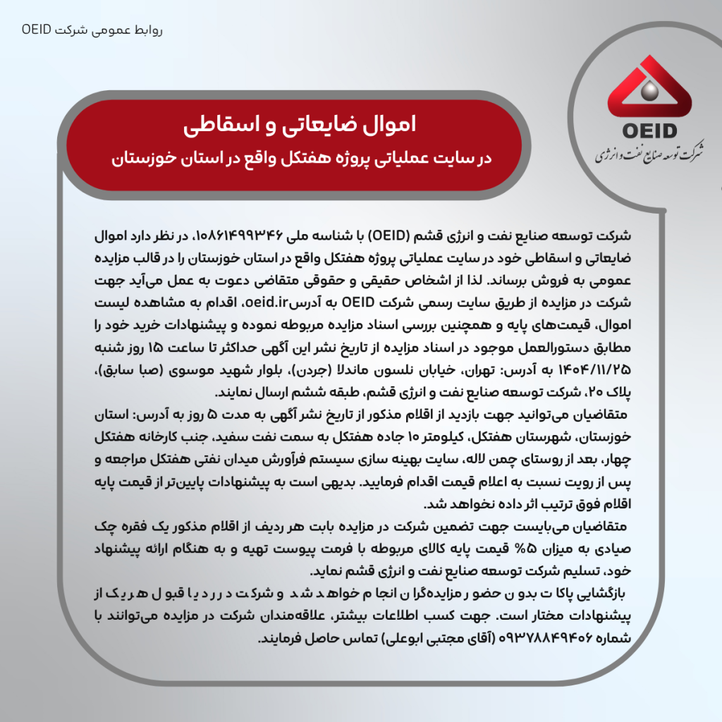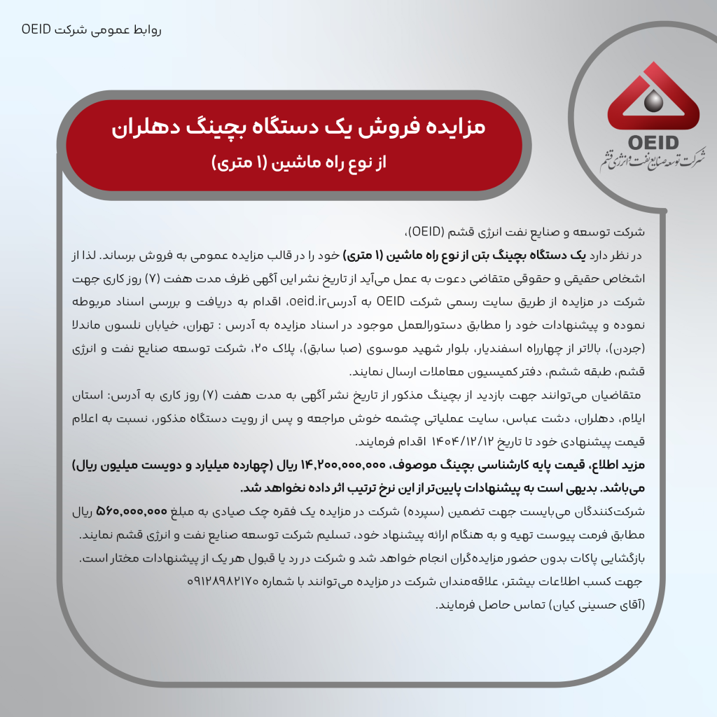 برای دانلود فایل اطلاعات مزایده، کافیست روی دکمه سبز رنگ کلیک کنید.